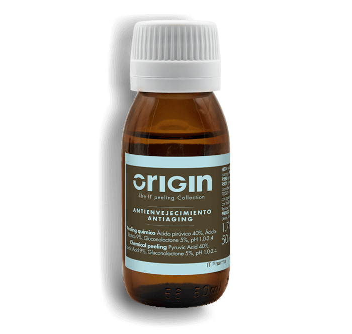 Омолоджуючий пілінг Antiaging Origin – поверхневий хімічний пілінг, що омолоджує, підтягує шкіру та розгладжує дрібні зморшки. Створений на основі АНА та РНА кислот, які у комбінації цілеспрямовано впливають на вікові процеси. Контрольований вплив кислот забезпечує нормалізацію процесів синтезу, оновлення та регенерації клітин, прискорює процес відлущування та робить гладким рельєф шкіри.
